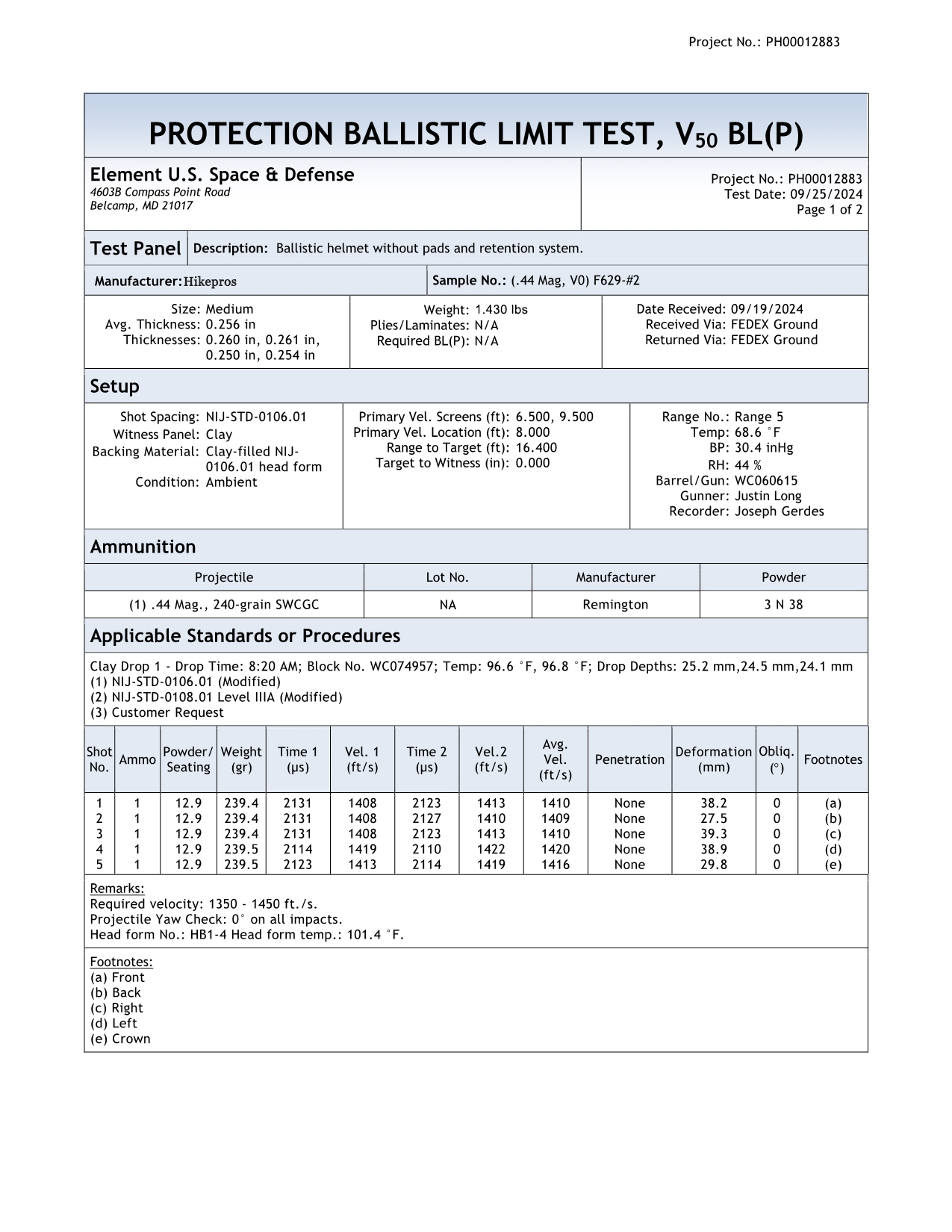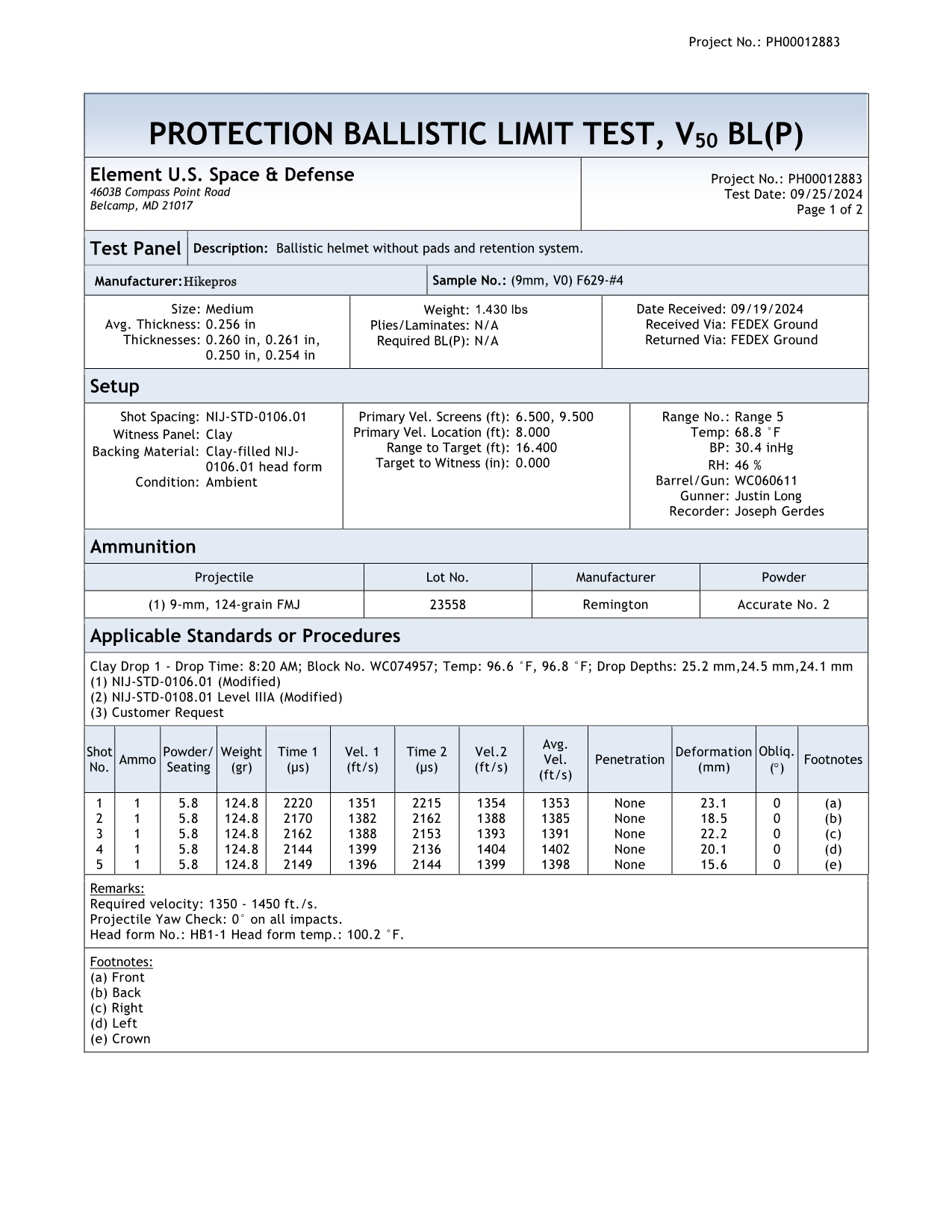 IV.NIJ LEVEL TEST RESULTS
