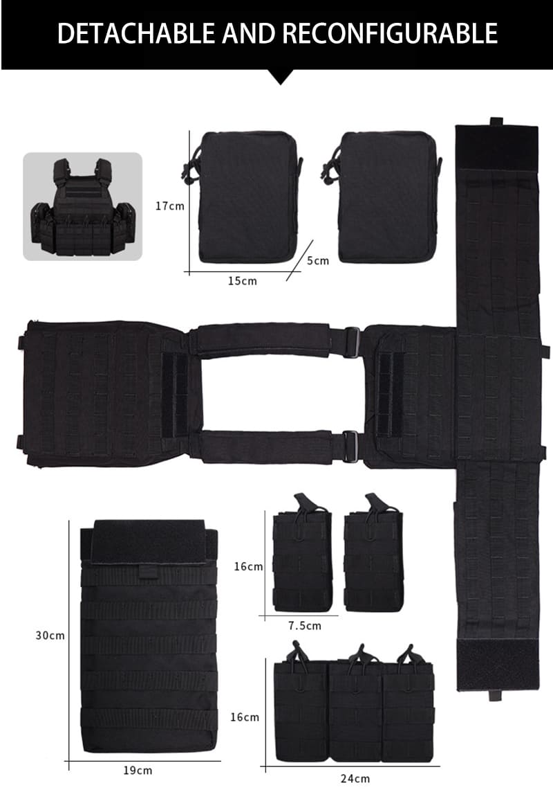 - All accessories are removable and rearrangeable, suitable for tactical, duty.