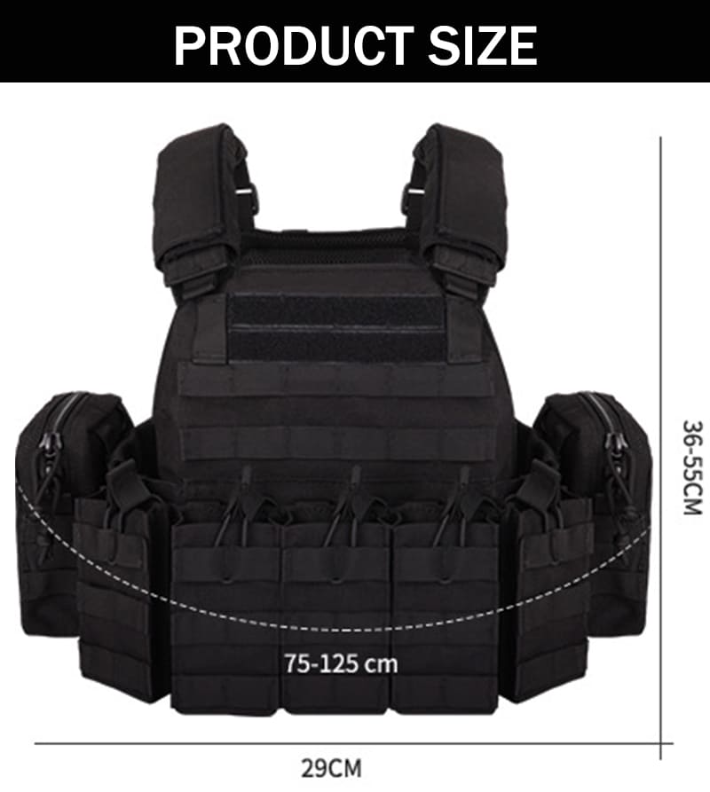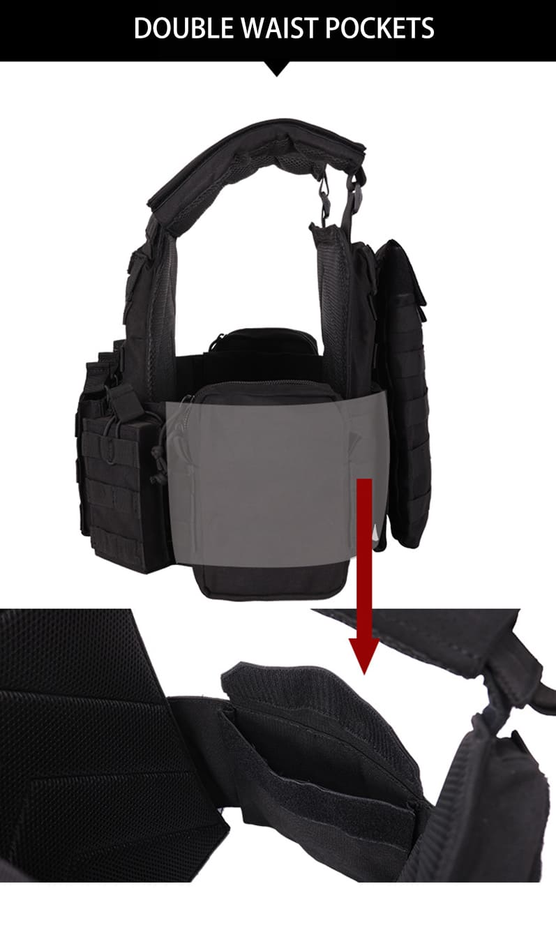 1000 Oxford Cloth Camouflage Amphibious Bulletproof Vest Outdoor Hunting Protective Adjustable Multifunction Tactical Vest,using 1000D encrypted Oxford cloth as the main material. 1000D Oxford cloth has extremely high wear resistance, tear resistance and waterproof performance, and can still maintain durability in harsh environments.The shoulder and waist sizes are adjustable and suitable for all adults weighing 120 pounds to 270 pounds.The overall quick-release version has multiple detachable utility bags that are detachable, reinstallable, and pluggable.