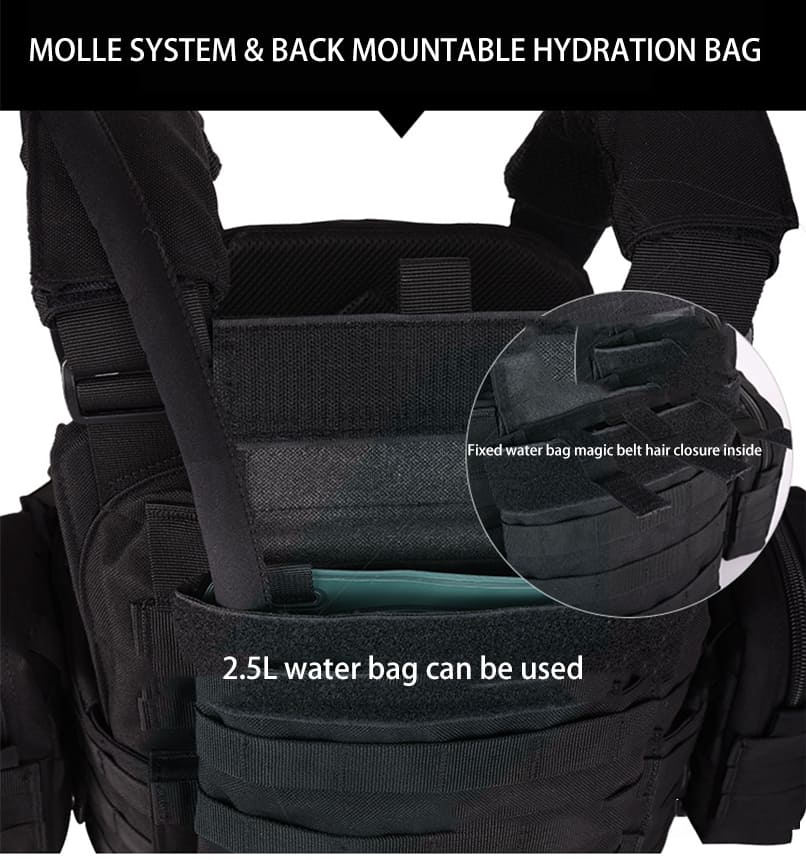 - Can place 10x12 inch bulletproof plates on the front and back
