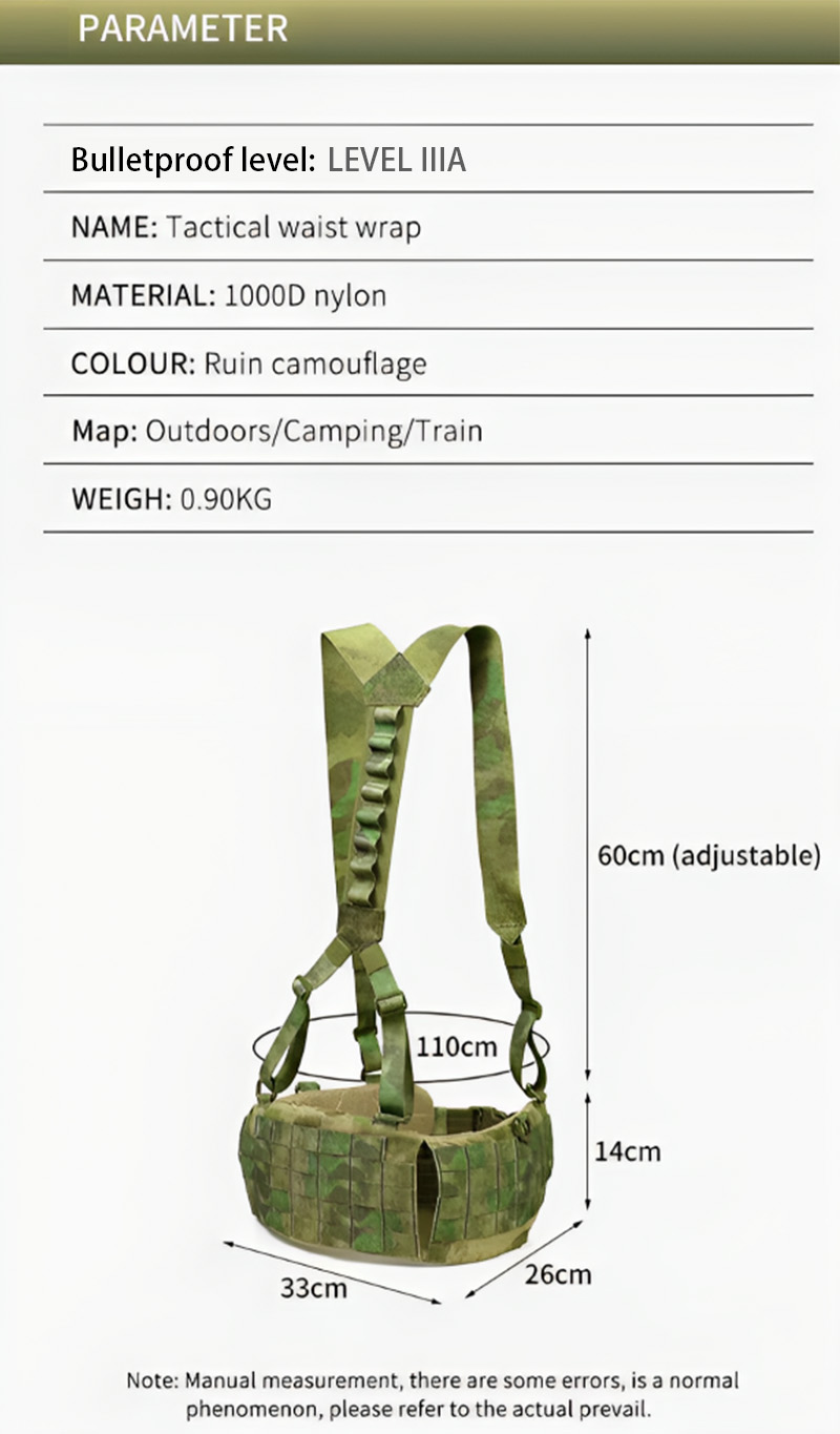 1000D Nylon IIIA Level Tactical Belt Training Combat Patrol Military Equipment Belt, made of advanced 1000D encrypted nylon material, is wear-resistant and tear-resistant, and maintains stable performance in various harsh environments. This tactical belt is IIIA level protection and uses advanced protection technology to effectively resist various impacts and collisions. Whether it is close combat or encountering an emergency, this belt can provide you with solid protection. When training or performing tasks, you can easily mount pistols, grenades, knives and other equipment. The lightweight design of the belt also keeps you relaxed and comfortable during long battles. The quick adjustment function allows you to complete the replacement and adjustment of equipment in a short time, allowing you to respond quickly at critical moments.