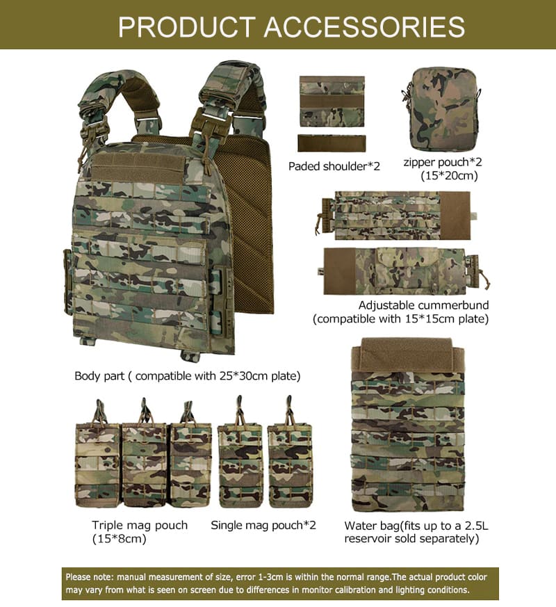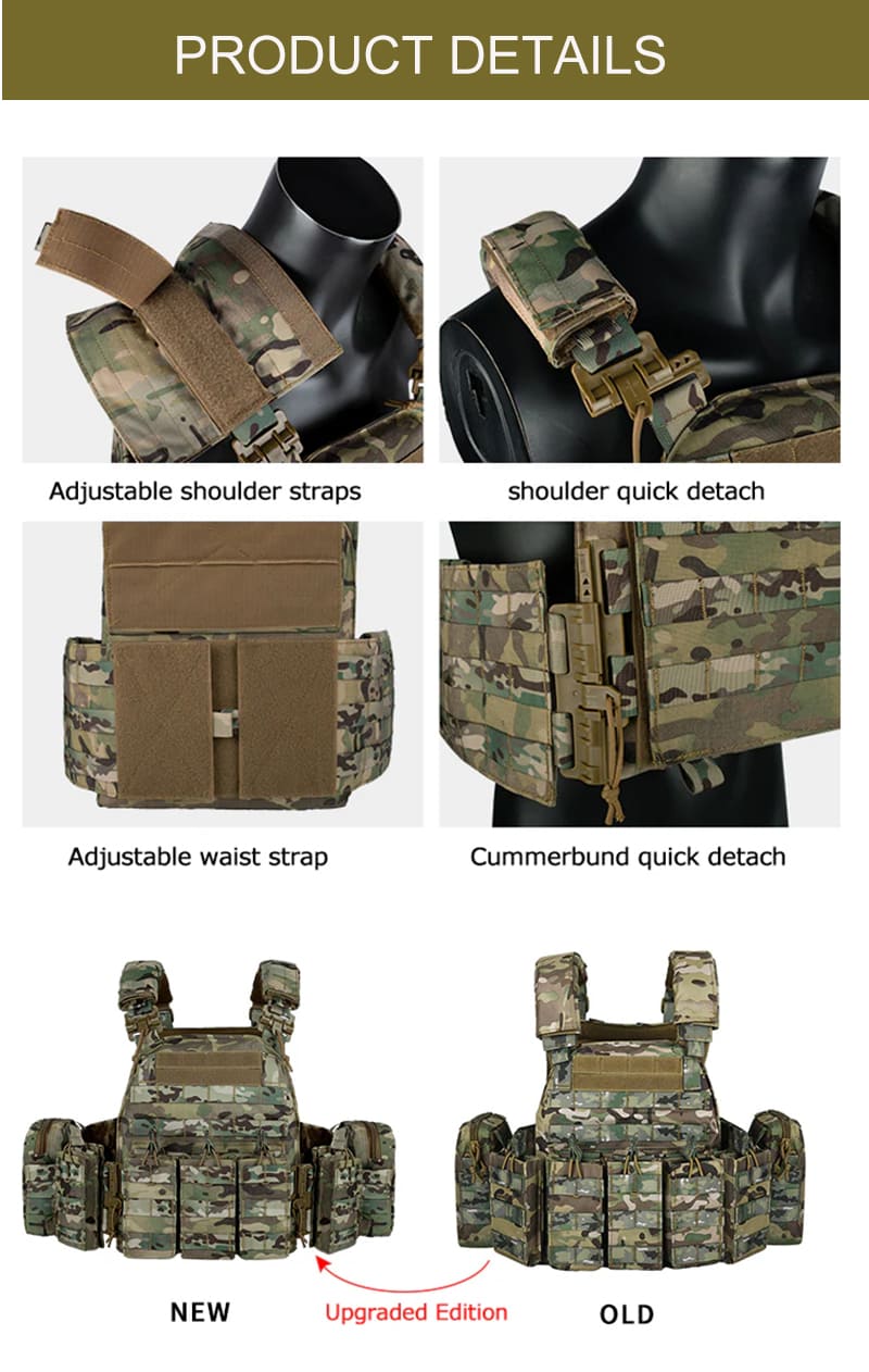 Front and back bulletproof plates, using high-performance materials to ensure the lightweight bulletproof effect of the vest. The outer layer of the vest is made of encrypted Oxford cloth, which is wear-resistant and tear-resistant, and can withstand the test of various harsh environments. The shoulder and waist sizes are adjustable and suitable for all adults weighing 120 pounds to 270 pounds.The overall quick-release version has multiple detachable utility bags that are detachable, reinstallable, and pluggable.