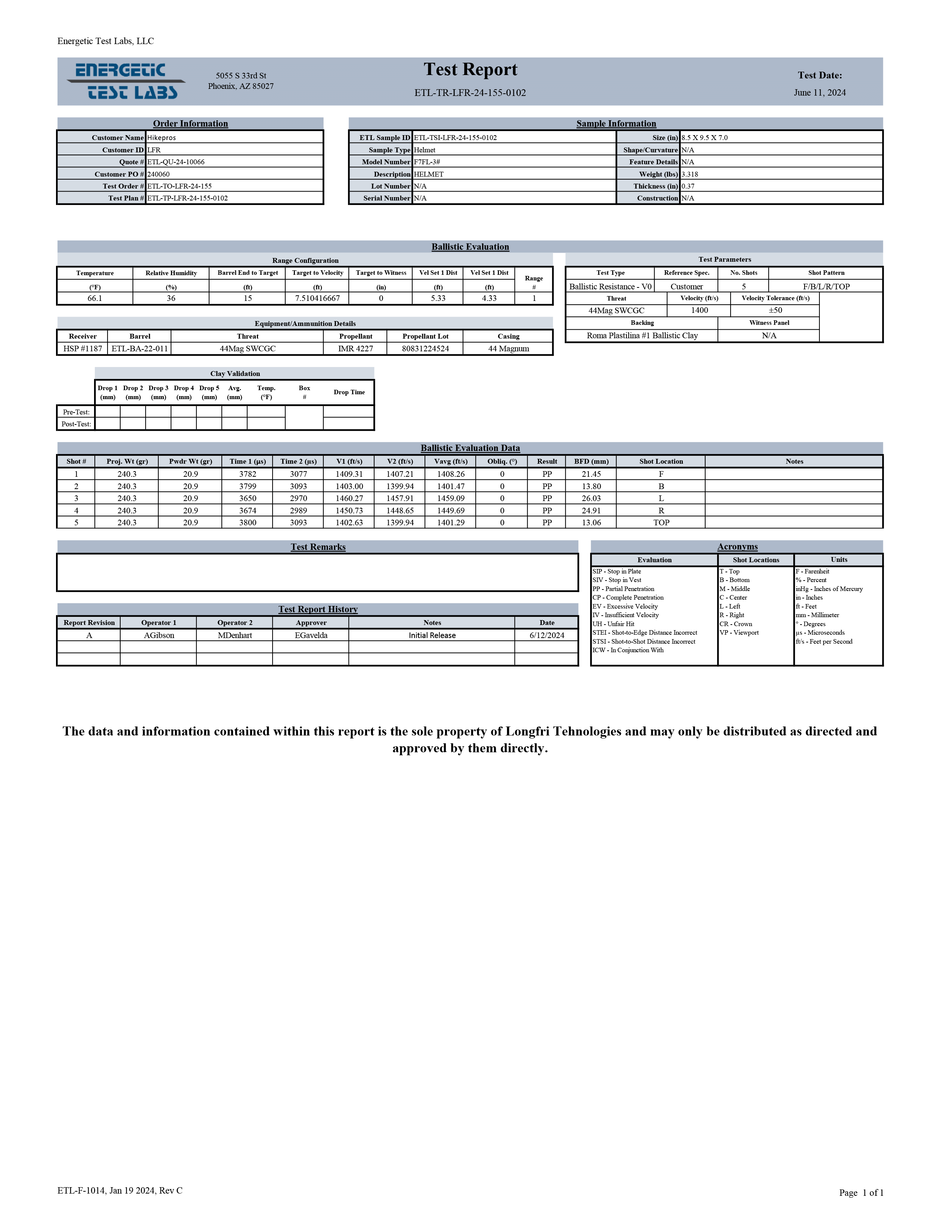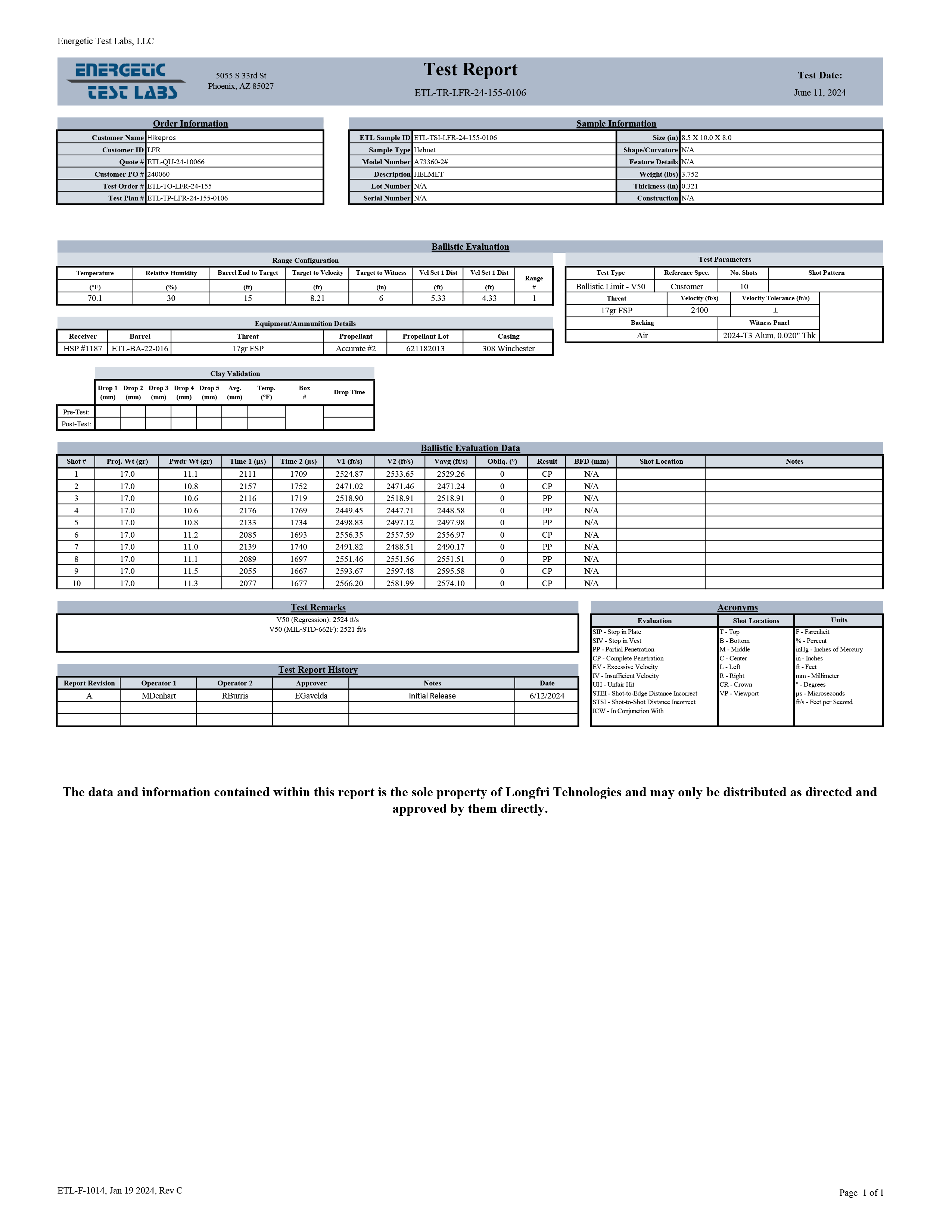 17gr V50 ≥ 2400 ft/s (731 m/s)