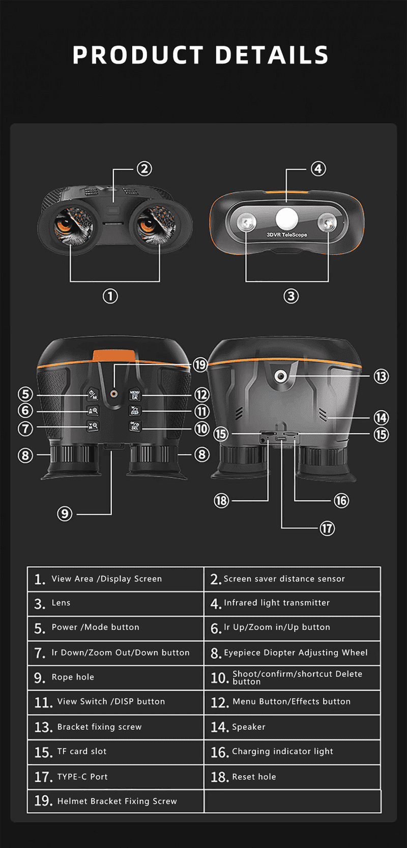 Product name:VRNV100 Helmet-mounted Naked Eye 3D VR Night Vision Goggles Infrared Binoculars HD Night Vision Goggles Independent Diopter Adjustment Outdoor