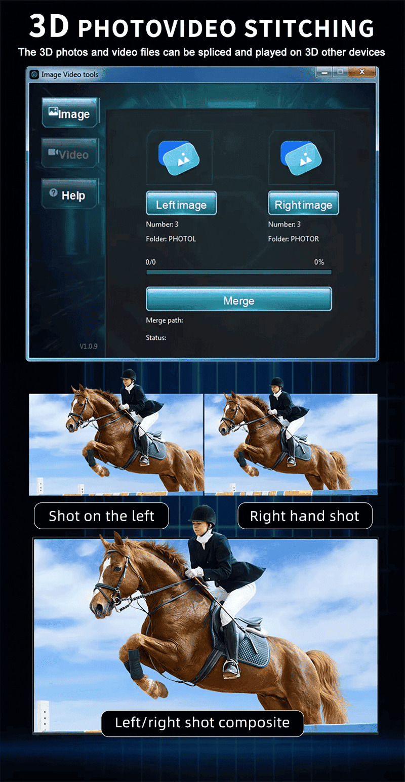 3D video resolution: 7680x2160, 5376x1520, 3840x1080, 2880x1080, 2560x720/60FPS, 2560x 720 narrow angle, 1280x360 narrow angle