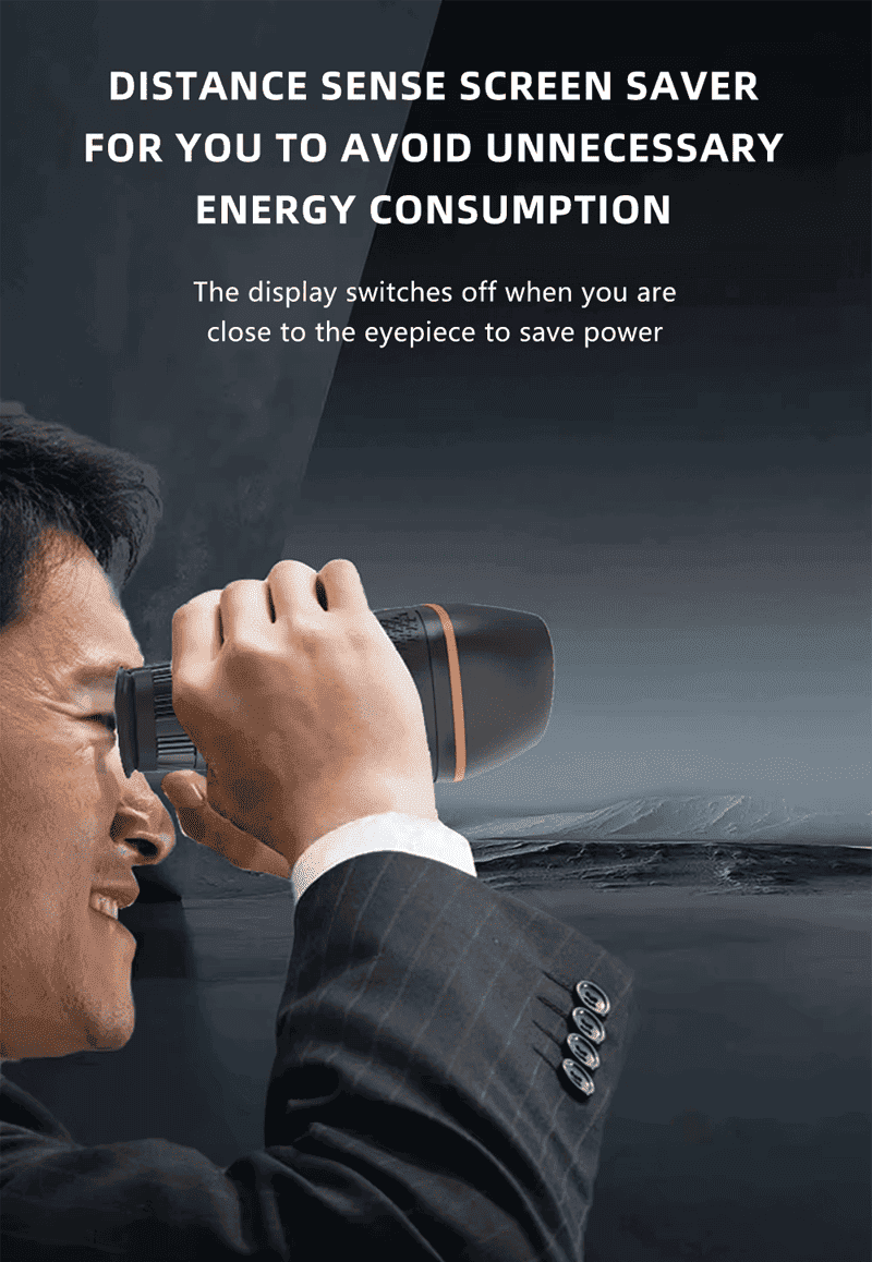 With distance sensing screen protection function, the display turns on when watching near the eyepiece, and the display turns off when leaving