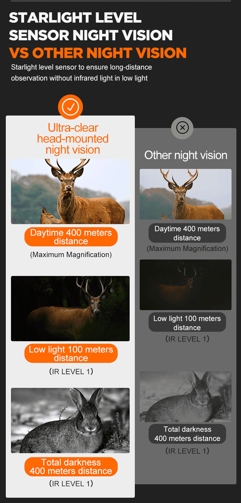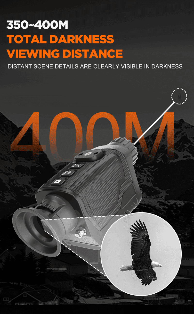 Observation distance: 350-400 meters in total darkness, 1m-infinity in low light