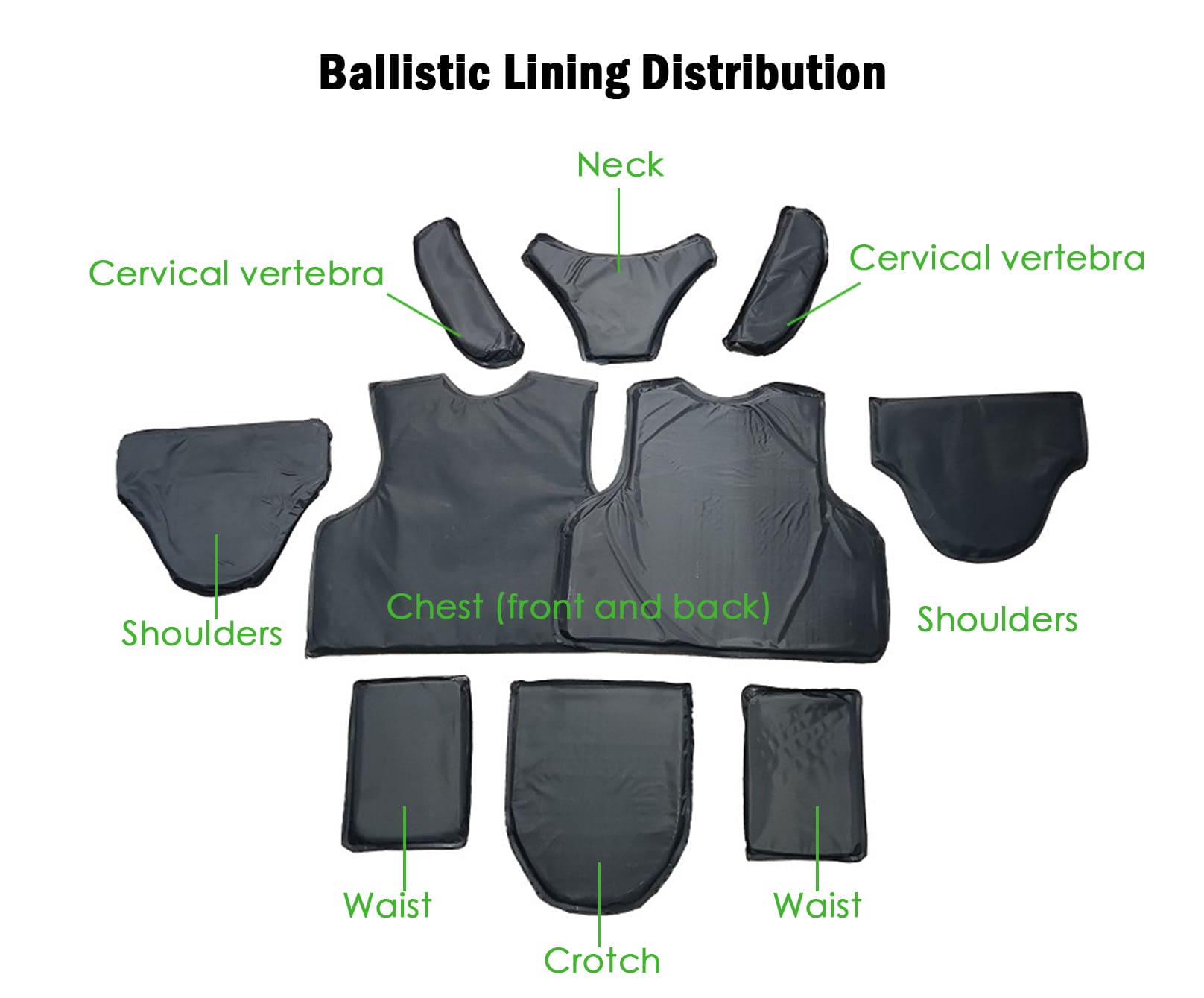 Ergonomic Comfort Fit: Designed with ergonomic principles, the bulletproof vest liner contours to the body for a superior fit. This design enhances comfort during long-duration wear and allows for a full range of motion, crucial for tactical personnel.