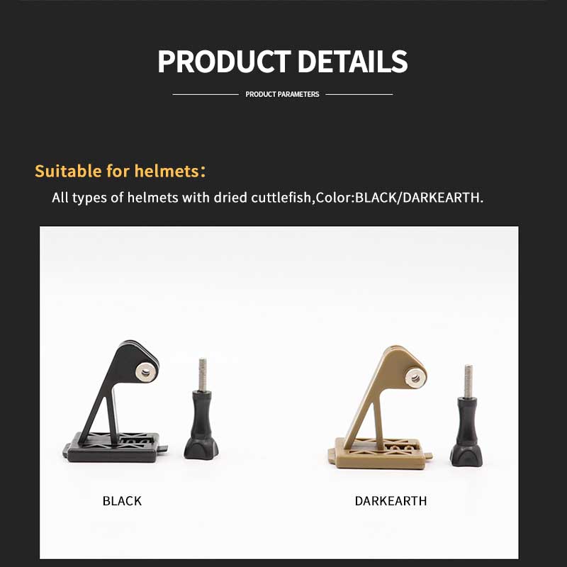 Engineered for versatility, this camera mount easily connects GoPro cameras (Hero 1/2/3/4) to tactical helmets outfitted with standard NVG mounting plates. The quick release design allows for fast attachment and removal, while the professional fixing screw ensures a firm, secure hold without the need for additional tools. Whether you‘re an outdoor sports enthusiast, a CS player, or a tactical professional, this mount keeps your hands free while you shoot photos or video, ensuring you never miss a moment.