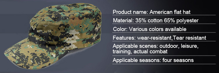 The Military Outdoor Camouflage Hat is a versatile and stylish headwear option designed for both tactical professionals and outdoor enthusiasts. This American camouflage training hat features a classic octagonal (eight-panel) design that provides a comfortable, structured fit for both men and women. Whether you‘re on a training exercise, hiking remote trails, or enjoying a casual day outdoors, this soldier hat offers reliable sun protection and a distinctive tactical aesthetic.