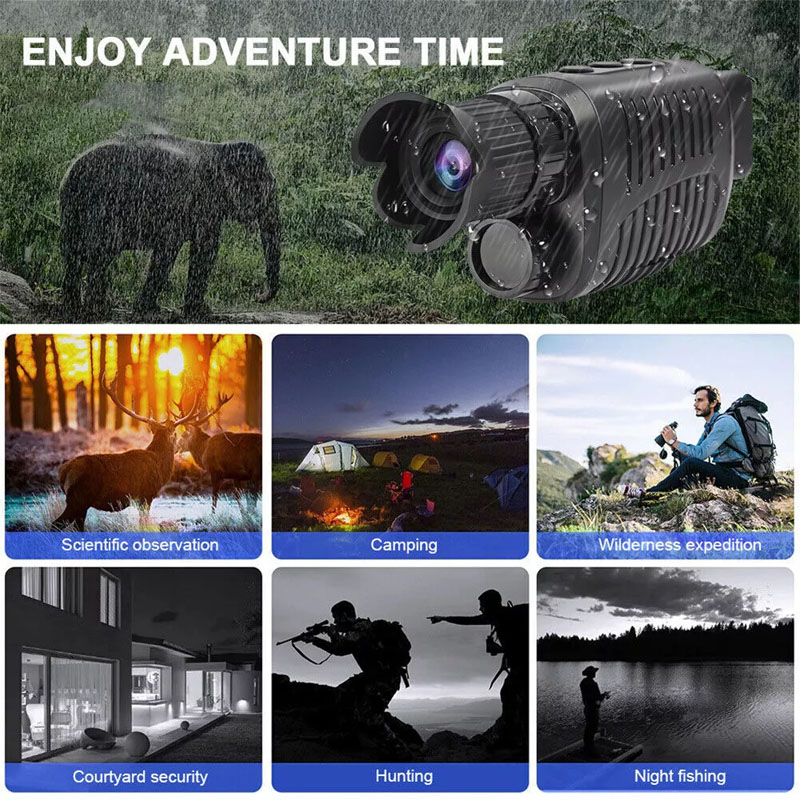 Wide range of uses: The digital night vision monocular can be a good helper for your hunting, camping, fishing, sailing, reconnaissance, surveillance, outdoor adventure, search and rescue, animal observation, garden monitoring, bird watching, landscape photos. You can view photos/videos immediately, or save everything to a memory card and download it easily