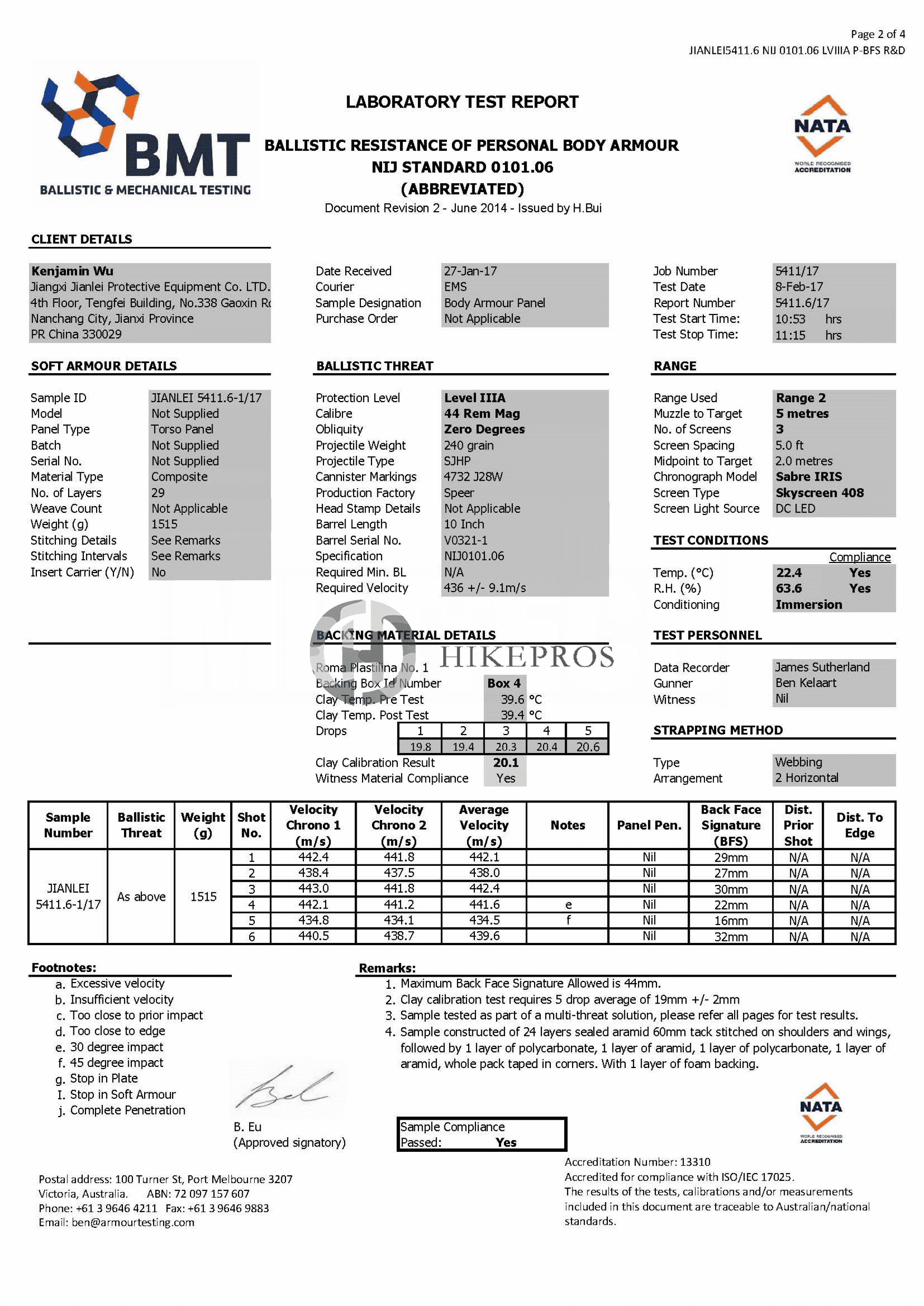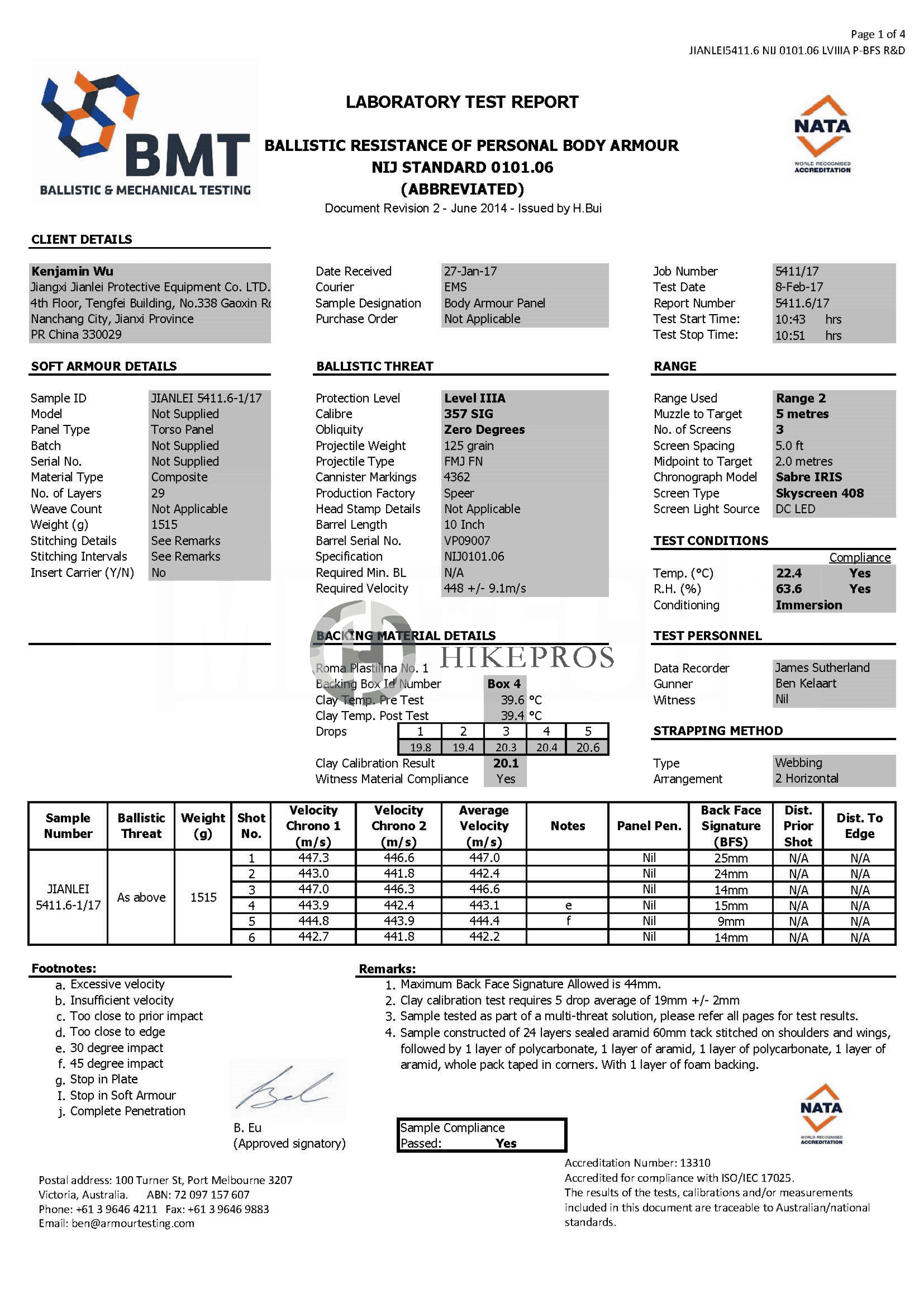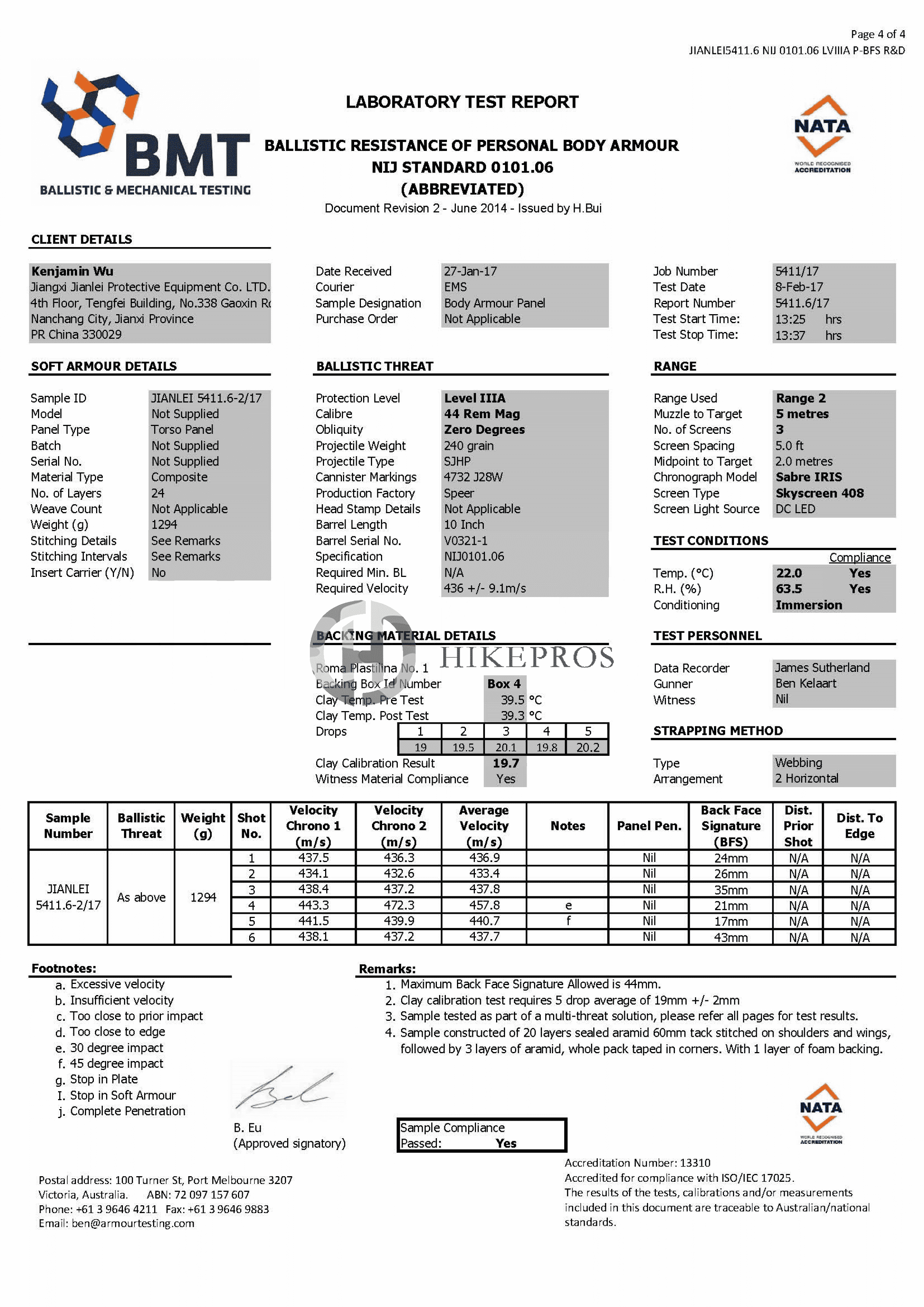 IV.NIJ ballistic test report
