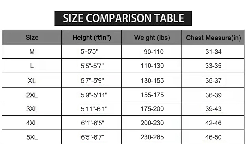 - Size: M. L. XL. 2XL. 3XL. 4XL.5XL.