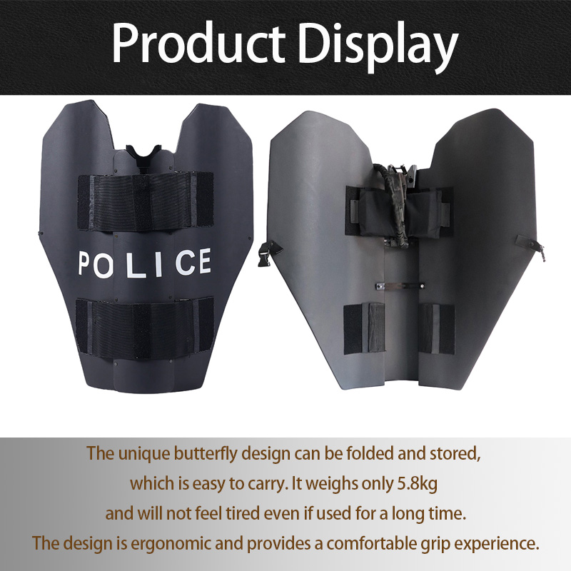 NIJ Level IIIA Shield Foldable Expandable Tactical Ballistic Shield is made of ultra-light and high-ballistic performance PE fiber. Its biggest advantage is that it is ultra-light, foldable, easy to store and portable, and is highly praised by the majority of soldiers and police.